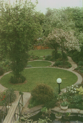 After finishing the interior we turned to the garden (which is probably why Renata chose the house in the first place). Having been given the run-around by builders for over a year we got a book on bricklaying out of the library, ordered various tools and supplies, and started building steps and retaining walls in the back garden. Progress was hampered by snow and rain but it was eventually finished, including an access slope at the side of the pond — so that I shall still be able to get into the garden even when I'm in my wheelchair. Unfortunately I damaged my back at the end of August 2001 while mixing and laying concrete for this, and my leg was very painful for the next couple of years — when I flew to Holland in December I actually needed a wheelchair!
