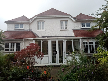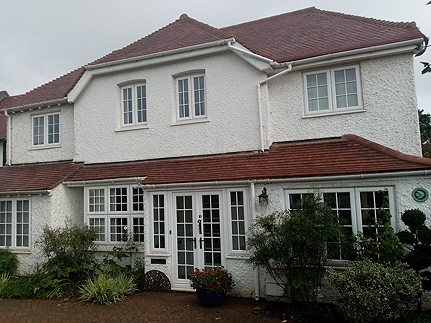 In 2013 the wall in the front garden had been giving trouble for a few years — the pebbledash render kept coming off — so we had it topped with some old roofing tiles given to us by a neighbour, and Renata has extended the hedge in front of it so that you can't see the side of the wall!