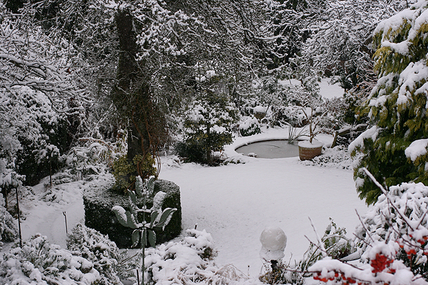 Of course it isn't always spring or summer in the garden. Here you see it in the snow in December 2017.